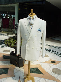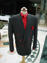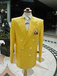 | Unlike most tailors, who will only use natural fibres such as wool, silk & linen, we like to experiment with the amazing effects which can be obtained with newer fabrics, such as lycras, spandex & lurex, giving careful consideration to the fit & ease of movement & the intended use of the garment. On the other hand, well cut, well made suits, in the conservative, wonderful Italian wools, cashmere, lambswool & merino are also extremely satisfying to make. | |||||||||
